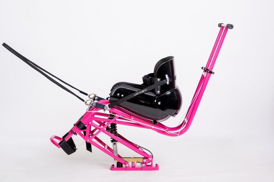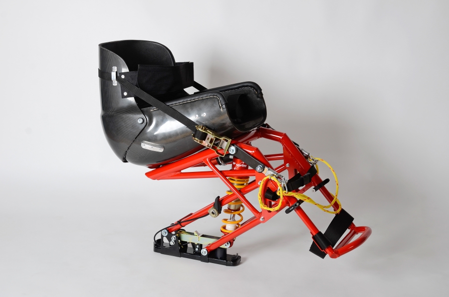 Sedák je standartně obšitý kůží pro snazšží nasedání a vypolstrován. Sedáky se vyrábí ve velikostech 34,35,36,37,38,39,40,41,42,43,44,45 cm. Měřeno v nejširším místě uvnitř sedačky. Lyži je možno dovybavit řidítky a laminátovým krytem na nohy